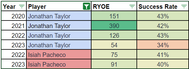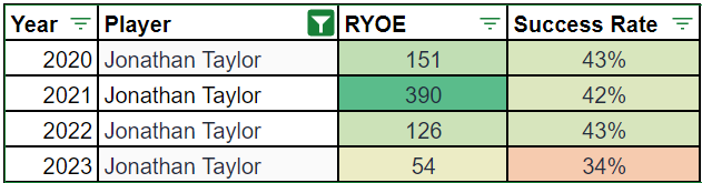 But it's one thing to bet on Jonathan Taylor to recapture previous efficiency and quite another to hope that a different player becomes 2021 Taylor.
