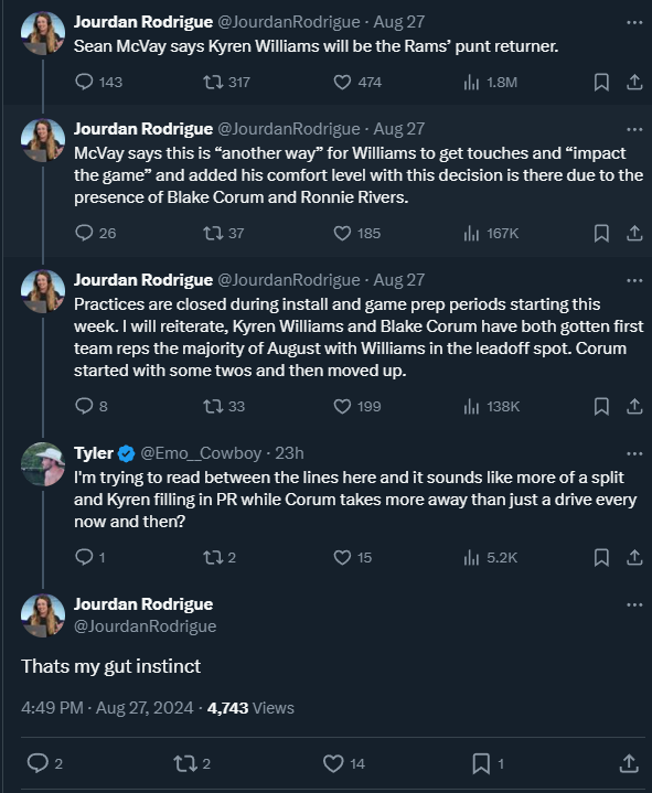 Jordan Mason also plays well in relief, to the point that a reporter asks what it would take for Mason to be the No. 1 back. Shanahan loses his shit.
