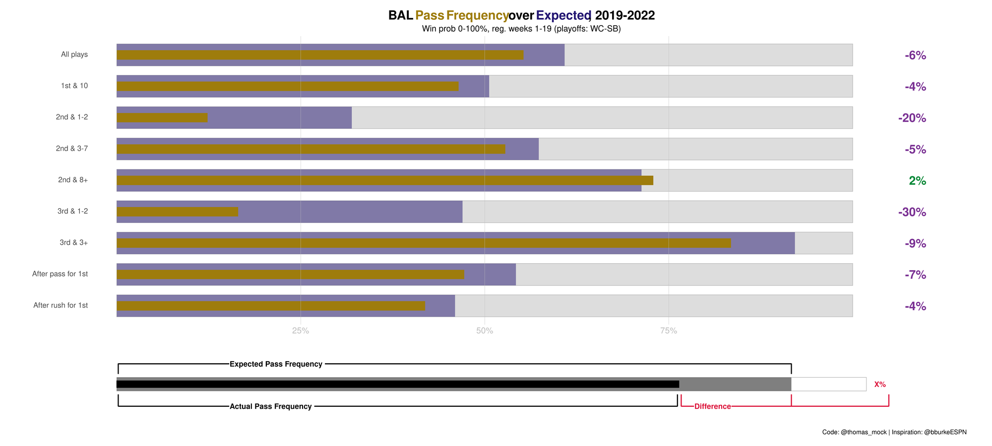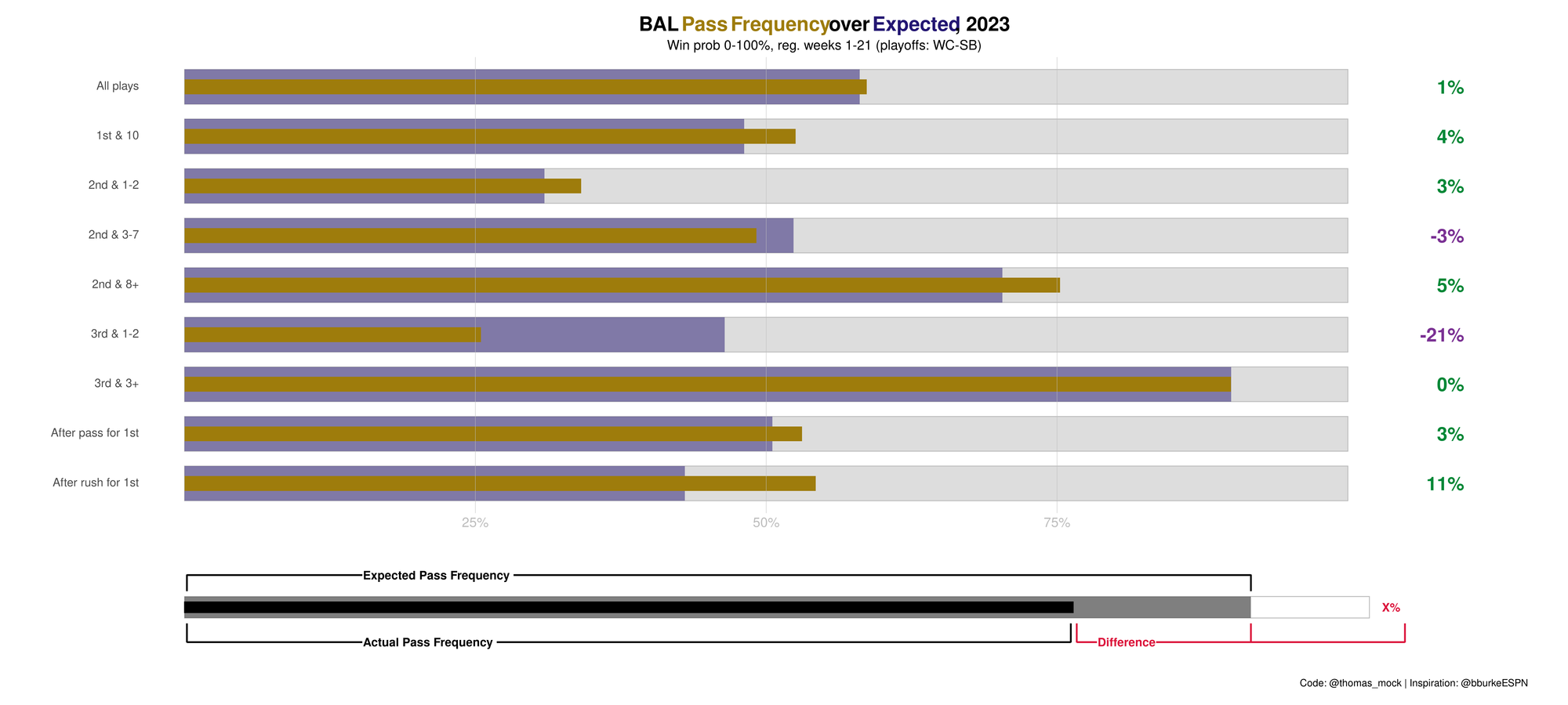 But under Todd Monken last season, the Ravens shifted gears. They actually passed more than expected, once game situation was factored in. And they were aggressive on 1st-and-10, signaling a much less conservative approach.