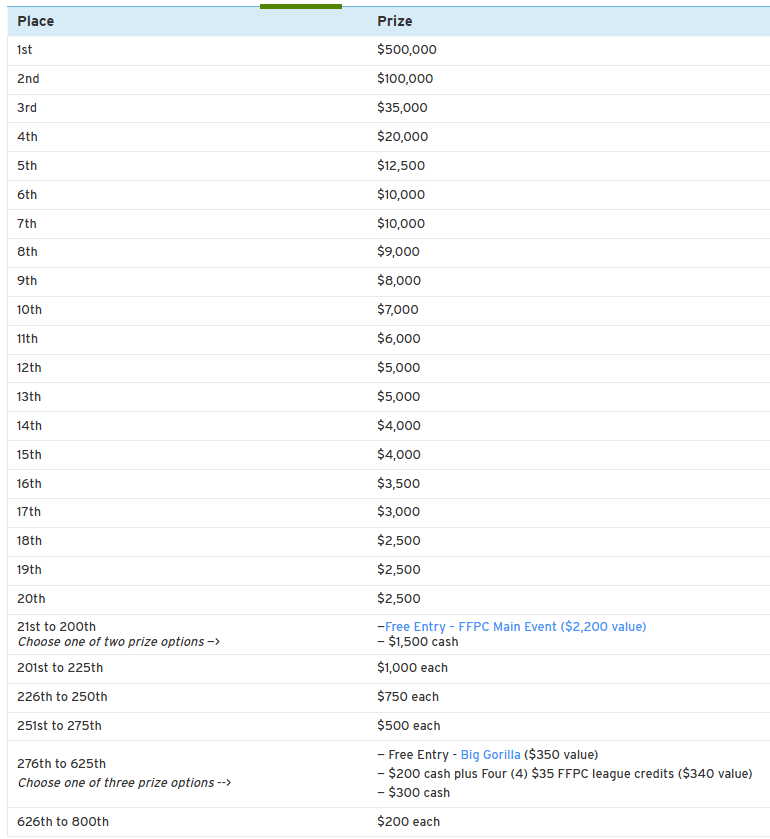Let's zoom out for a second. The $200 tournament has tournament has 7,250 entries with the following payout structure: