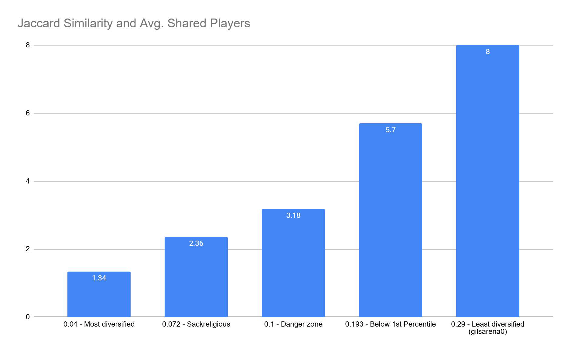 - Average Shared Players displayed beneath every category, to help translate the Jaccard similarity score to a more intuitive metric