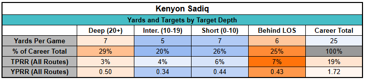 Even as a three-year tight end, Sadiq's production profile is lacking.