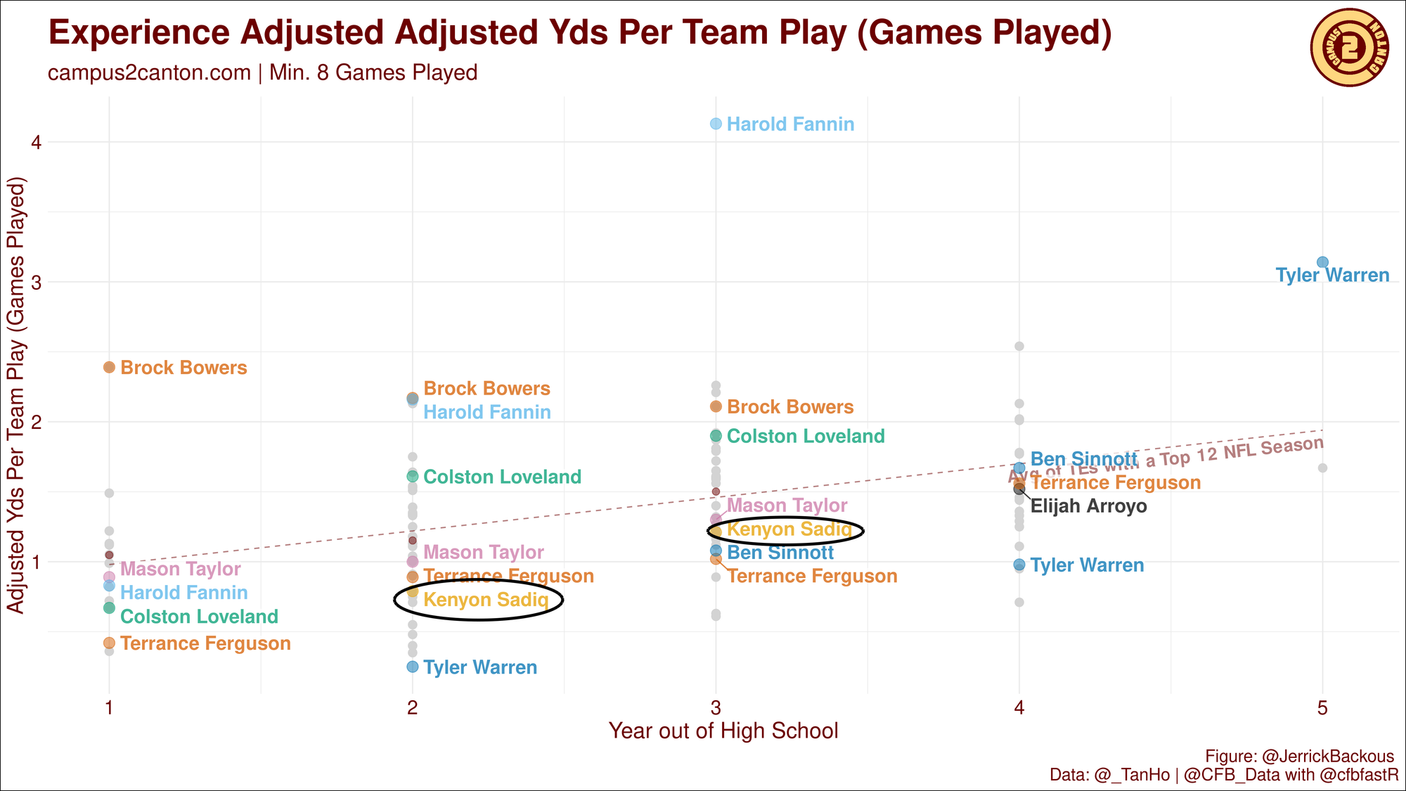 Even by tight end standards, Sadiq just wasn't very productive in college. He peaked with just a 15% yardage share, a 20% dominator rating, and 1.35 YPTA, all of which he hit in 2025.
