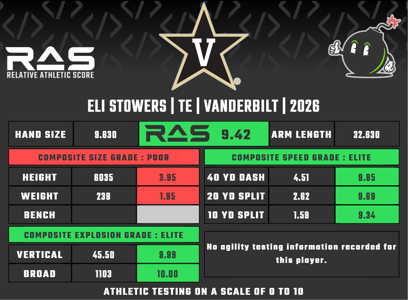 Stowers' ability to produce in college makes sense when you consider his elite athleticism. Literally no tight end in Combine history has ever jumped higher than Stowers.
