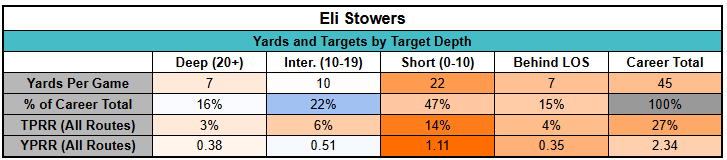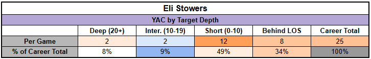 Still, it's worth considering that Stowers looks like a big possession receiver, not a field stretcher. His statistical profile suggests a lack of deep separation and contested catch ability. We're hoping Stowers can deliver as an underneath-target earner and a YAC producer. But that may require a specific schematic fit.