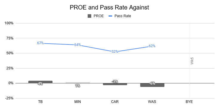 And as 4.5-point road favorites, the Bills should be in position to run the ball on a defense that only the Buccaneers have been pass-heavy against.