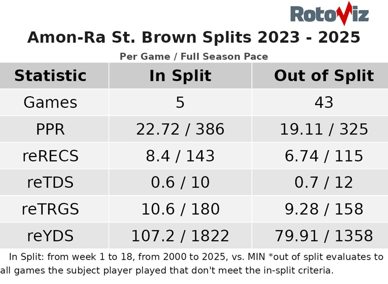 All of this comes around full circle to say what a simple split could convey. Since Flores has been in Minnesota, St. Brown has outperformed his norms in most statistical categories. This is historically a favorable matchup for him.