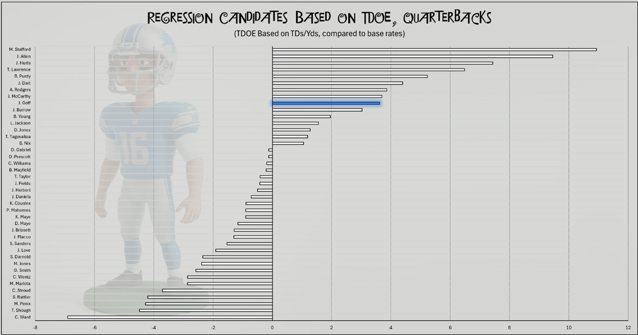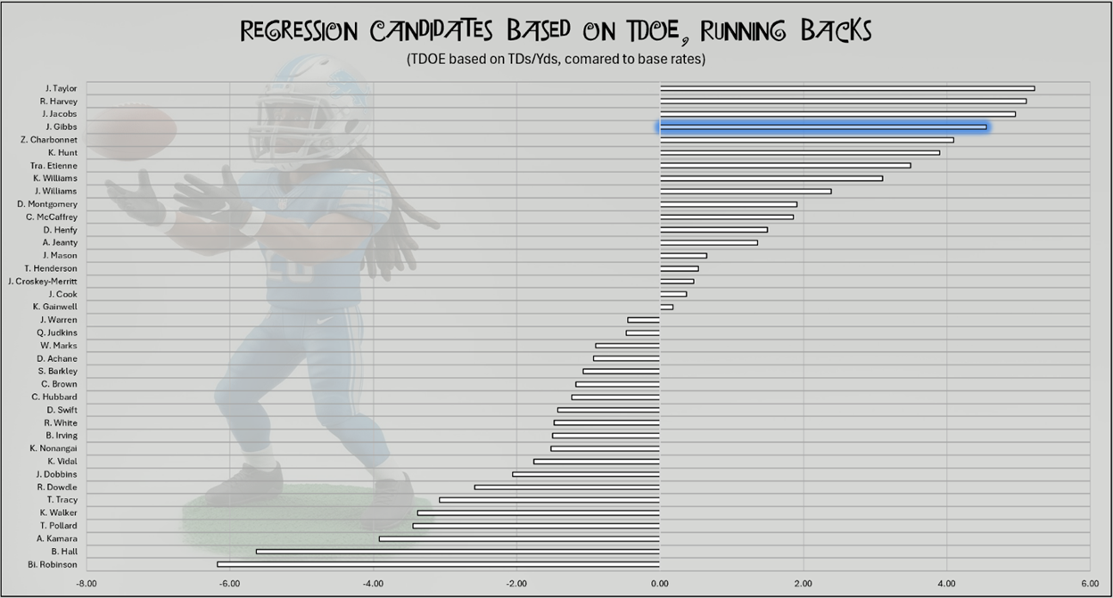 Technically, Gibbs is also a regression candidate based on my TDs/Yds TDOE model.