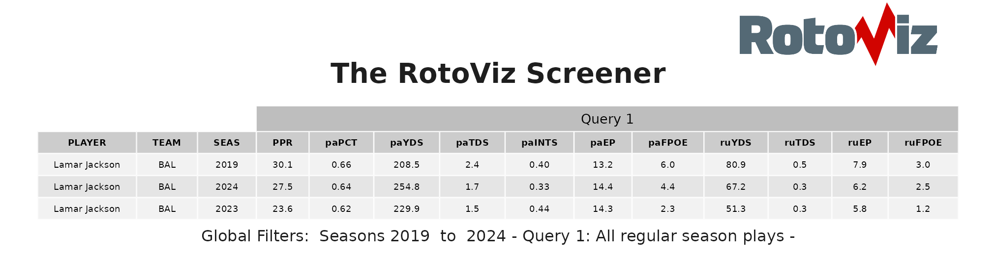 Jackson enters this game ranking first in PPR, rushing yards, and FPOE. He is also in the top five in passing TDs, Y/A, and QB rating; he has the lowest PFF turnover-worthy play percentage at less than one percent.