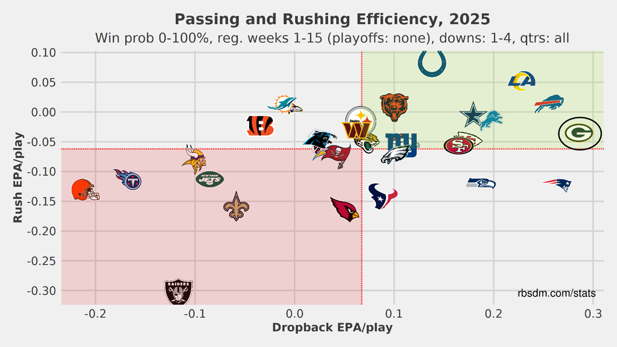 Offensively, they are above average in rush EPA, but they are the best in the league in dropback EPA.
