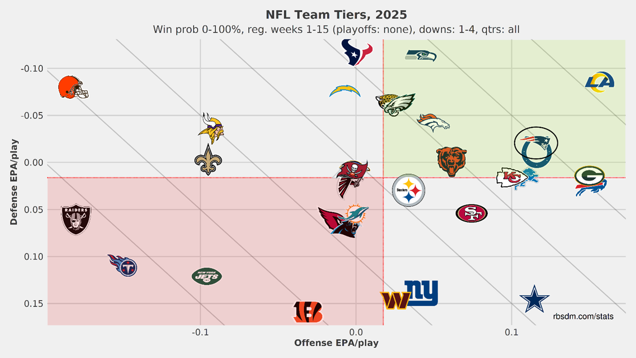 As it is, the Patriots are well above average in offensive EPA and above average in defensive EPA allowed.