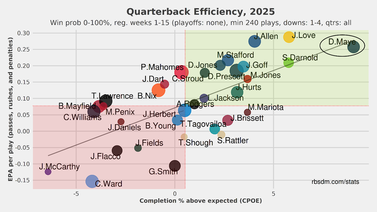Maye is, in fact, an efficient passer. He leads the NFL in EPA + CPOE composite.