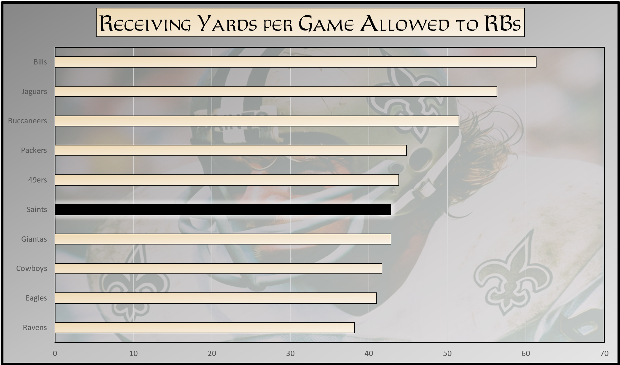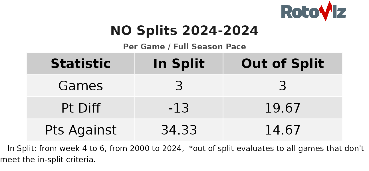 The thing is, the Saints began the year much better than they have been lately – something we've discussed – and this extends to both sides of the football. As a defense, they surrendered 14.67 points per game in Weeks 1-3 and 34.33 points per game since.
