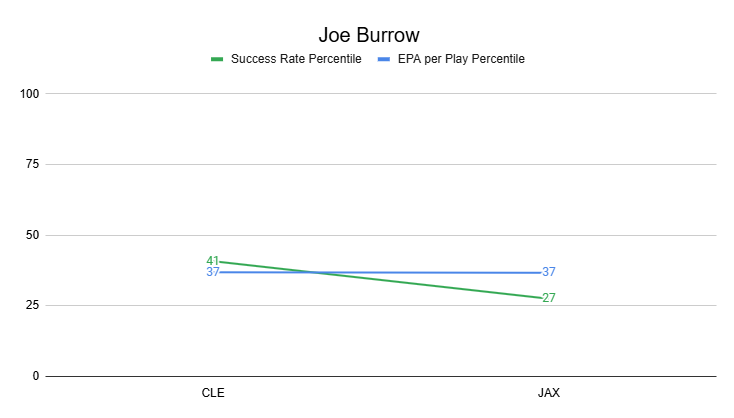Even still, Burrow still has the best season-long efficiency among the three QBs on the Bengals roster.