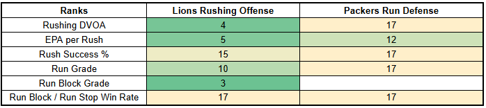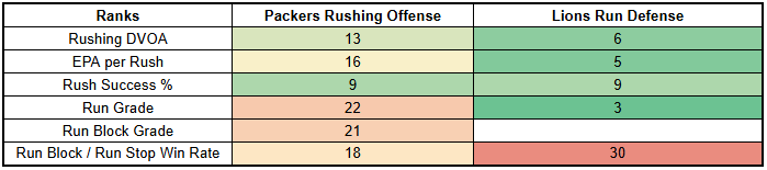 With that in mind, we can expect the Packers to run the ball against the Lions, despite Detroit's strong run defense.