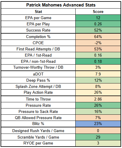 However, over the last three games, Mahomes has fallen to just QB28 on quick dropbacks.