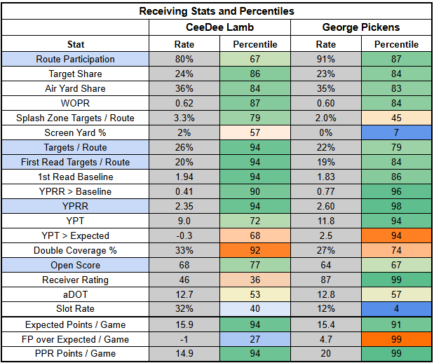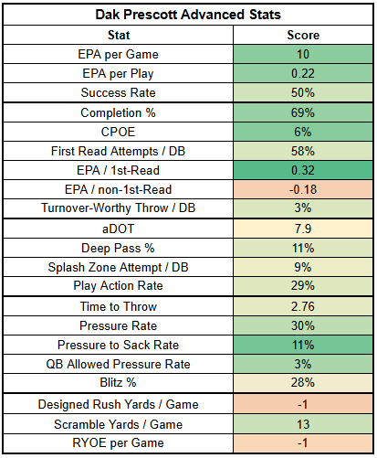 First-read success has been a key factor for Prescott this year, which makes sense, considering that he has two No. 1-level WRs.