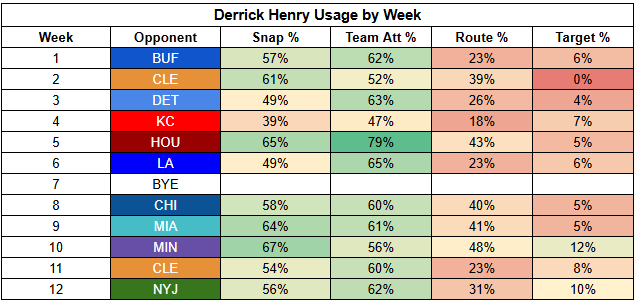 It was also nice to see Henry somewhat involved as a receiver last week, adding two receptions for 24 yards, even with Justice Hill back in the lineup.