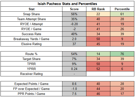 (The stats below are from PFF, NFLfastR, rbsdm.com, RotoViz, FantasyLabs, Fantasy Life, Fantasy Points, ESPN, FTN, and NFL Next Gen).