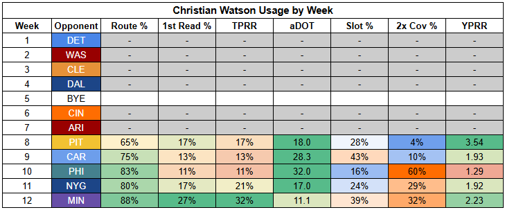 More and more, Christian Watson looks to be the No. 1 in the offense. Watson's big-play skillset also looks like a better fit for this matchup.