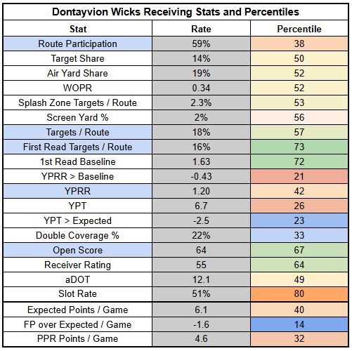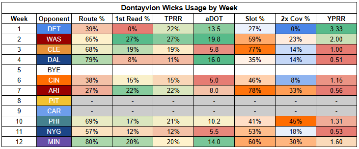 Wicks has not been efficient this year, so as a part-time WR, he's just a dart throw.