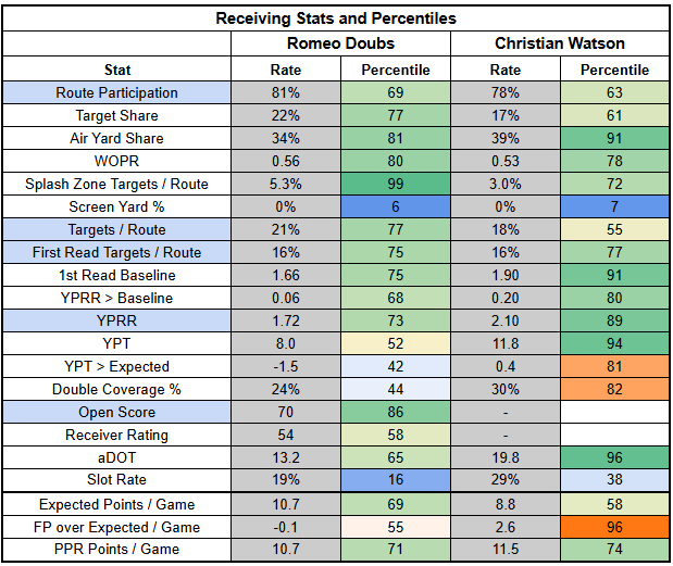 Both WRs are already seeing high double coverage rates, but are still getting open and delivering very strong efficiency.