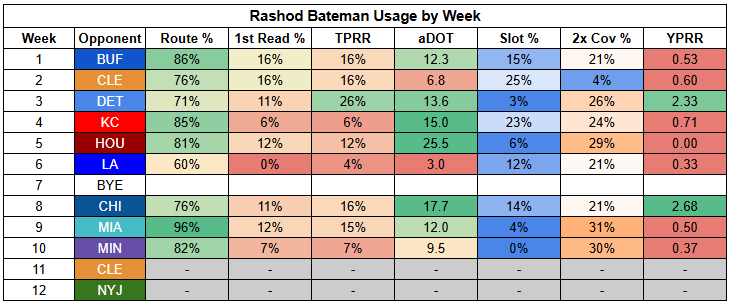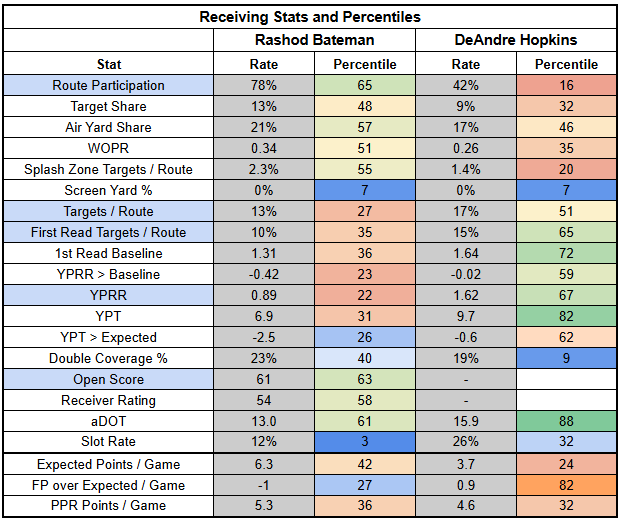 Rashod Bateman is set to return this week, which will likely return DeAndre Hopkins to a rotational role.
