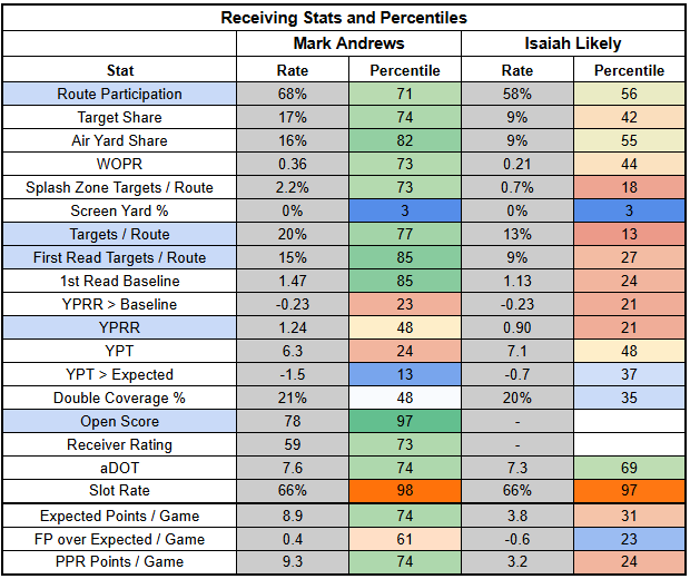 As frustrating as Andrews can be, his profile is still far better than Likely's. Likely is really just a bet on his 2024 profile... which is concerning since we're just over a month out from the calendar flipping to 2026. Still, both players have some matchup-based appeal. Andrews is a low-end TE1, with Likely as a low-end TE2.