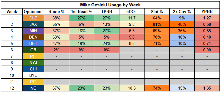 Mike Gesicki returned last week, and even off of injured reserve, saw his usual bump in usage with either Chase or Higgins out of the lineup.