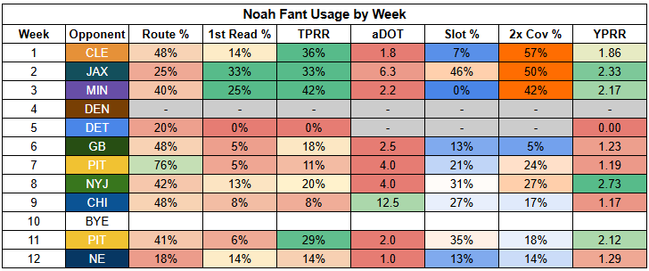 This coincided with Noah Fant barely playing.