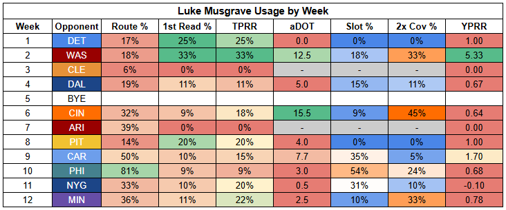 With Matthew Golden out last week, Dontayvion Wicks was in a near full-time role.