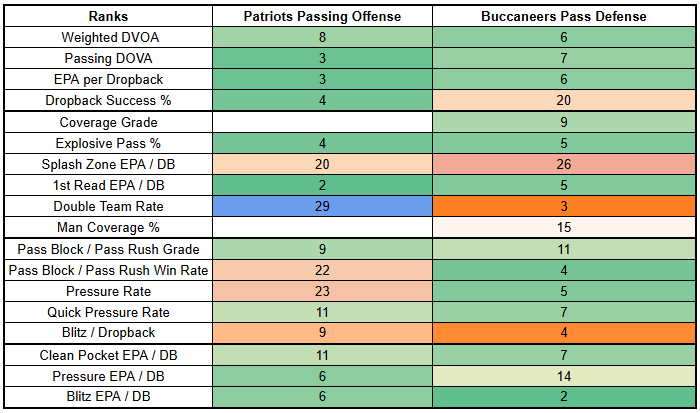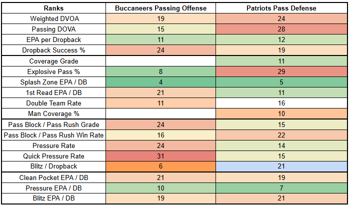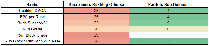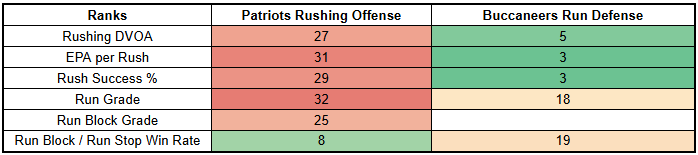 And this week, it's not like the Patriots can reasonably expect to lean on the run. The Bucs have an elite run defense, and the Patriots have one of the worst run games in the league.