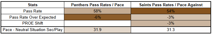 In fact, even with the Saints being better against the run than the pass, they are profiling as a run funnel. Opponents have a 54% pass rate against New Orleans, the lowest in the NFL. This is partly because they are bad and often traill; but with the Panthers as 5.5-point home favorites, they should be able to play from ahead like the typical Saints opponent.