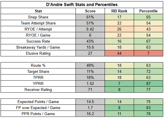 Swift hasn't been bad this year; he's been surprisingly consistent, actually. He's also a factor in the passing game.