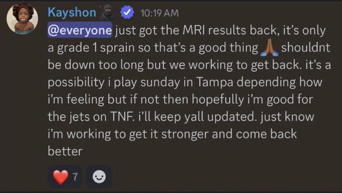 On his Discord sever, Kayshon Boutte announced that he suffered a shoulder sprain but still might be able to play against the Bucs.