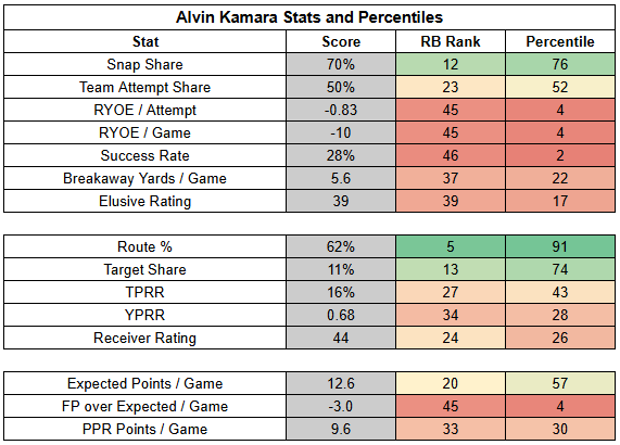 (The stats below are from PFF, NFLfastR, rbsdm.com, RotoViz, FantasyLabs, Fantasy Life, Fantasy Points, ESPN, FTN, and NFL Next Gen).