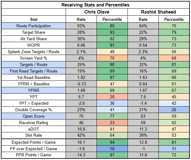 Shaheed's absence will further concentrate targets to Chris Olave. That's great for Olave, but it might not be ideal for the offense, given that Olave was already underperforming on the target volume he was seeing.