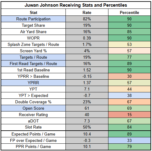 The secondary option is likely to be Juwan Johnson, who has consistently seen solid target rates but rarely done much with his looks.