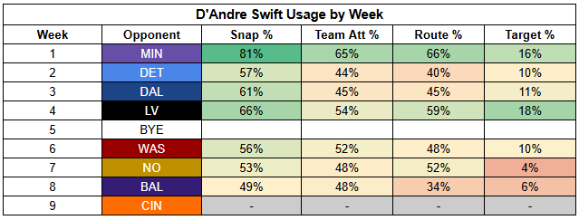 However, Swift looks set to return for this game. But even if he returns to his normal role... we're barely talking about a starter-level workload.