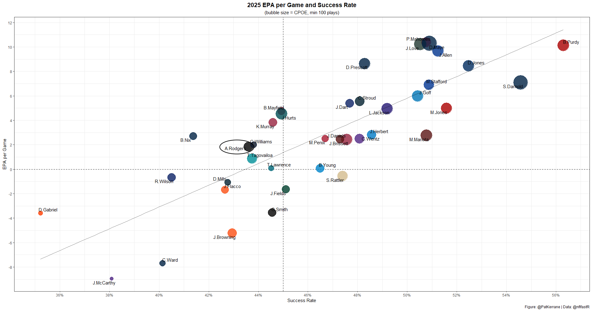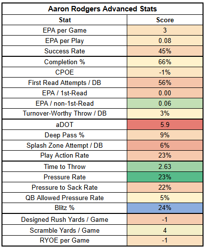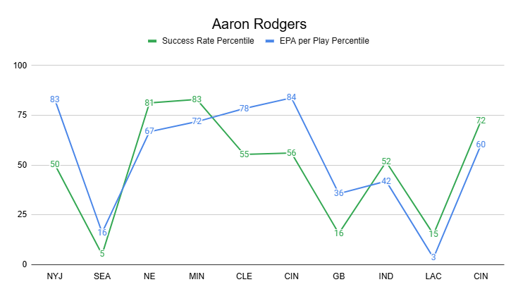 Rodgers is just QB26 in EPA per game and QB31 in success rate.