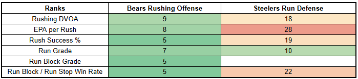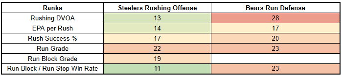 If the Steelers struggle on offense or play very conservatively, the Bears will be free to attack a Steelers run defense that has been thoroughly mediocre.