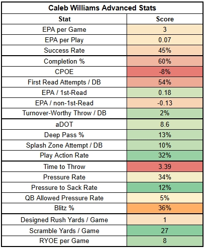Williams ranks just QB25 in EPA per game and QB29 in success rate.