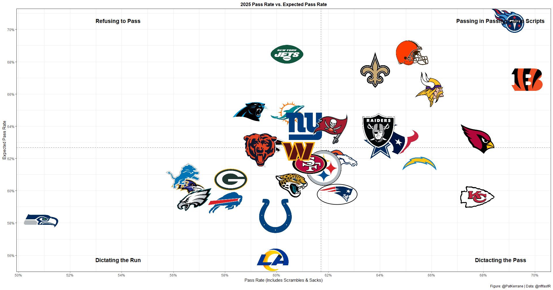 It's hard to know how relevant last week's playcalling is for this game, though. Kafka was shepherding a backup QB through a tough matchup against the Packers. It makes sense that he didn't want to air it out.