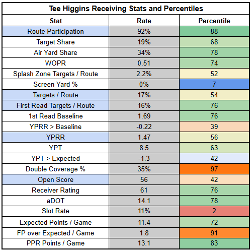 If Burrow rests another week, Higgins is still a high-end WR2 as a bet on target volume.