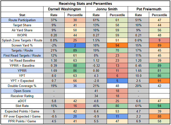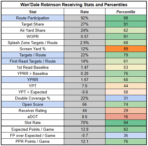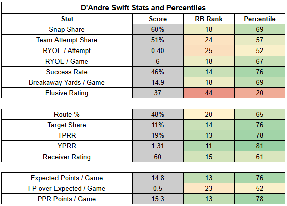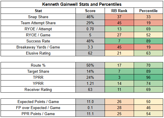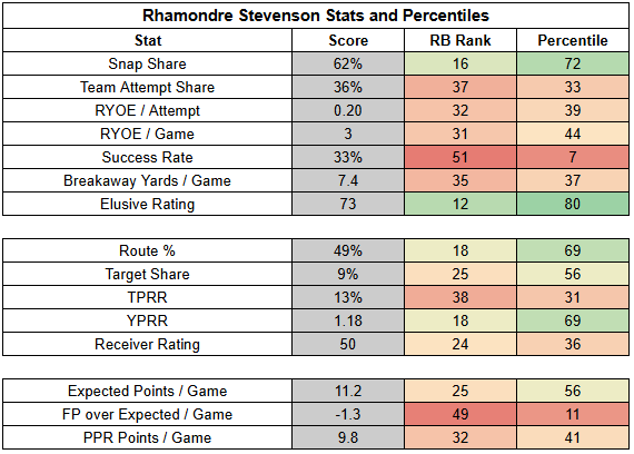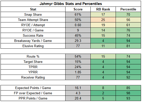 (The stats below are from PFF, NFLfastR, rbsdm.com, RotoViz, FantasyLabs, Fantasy Life, Fantasy Points, ESPN, FTN, and NFL Next Gen).