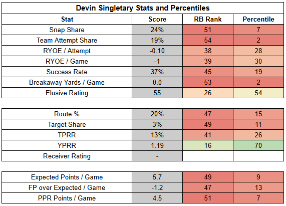 And with Cam Skattebo out of the lineup, the Giants' run game is deeply uninspiring. Devin Singletary and Tyrone Tracy have been splitting rushing work.