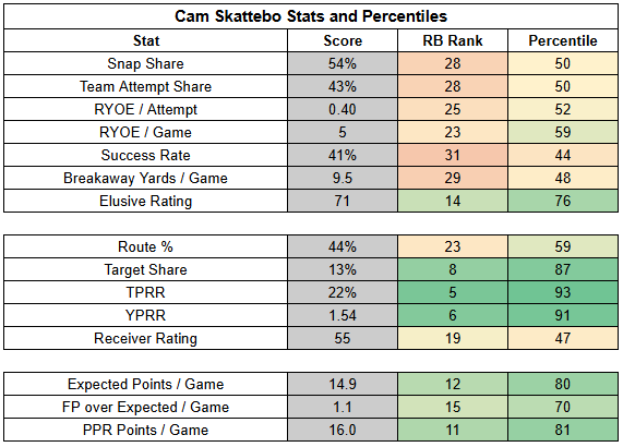 Skattebo proved that it doesn't have to be this way—this offense has supported much stronger efficiency in the backfield this year.