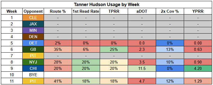 Fant could very well be in his regular role this week, making his floor quite low. But he has enough upside here to put him in the TE2 mix. Hudson is in the high-end TE3 mix.