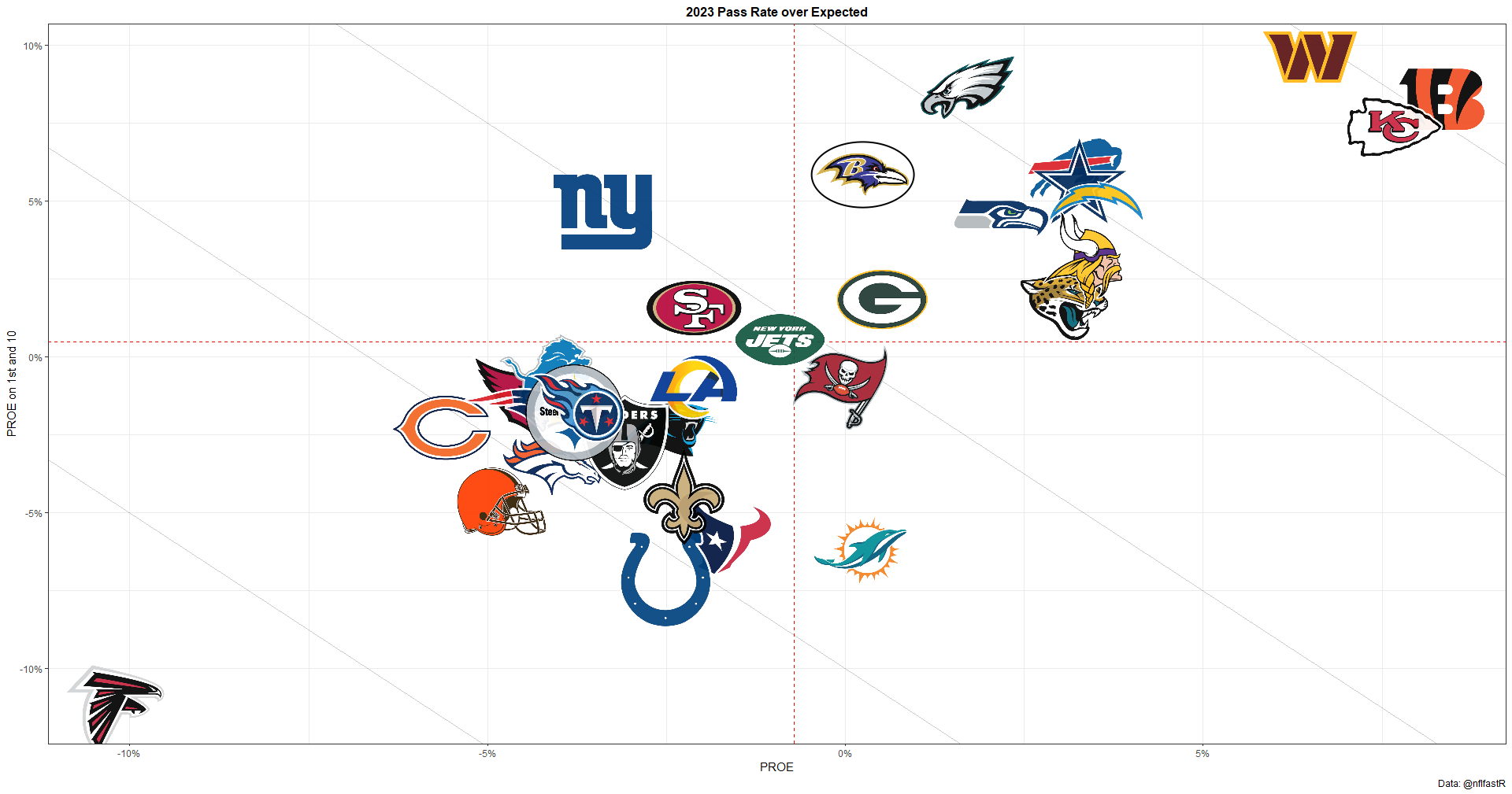 The Falcons are pairing their -10% PROE with a -11% PROE on 1st down, fully prioritizing the run game over the pass game.