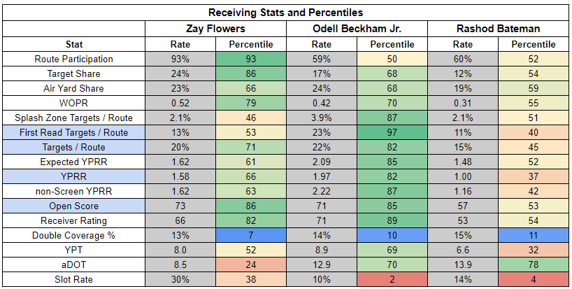 Obviously, Mark Andrews was part of the Ravens’ advantage in the splash zone. But Odell Beckham has been a weapon there as well, with an 87th-percentile splash zone target rate.